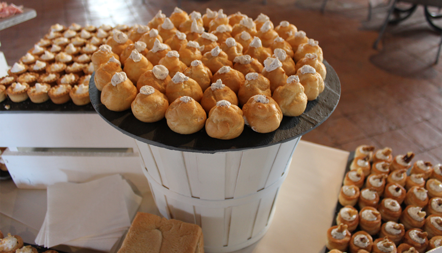 Alzata conica in fascie di legno colore bianco. Ideale per movimentare i vostri buffet. e' possibile appoggiare diversi vassoi.